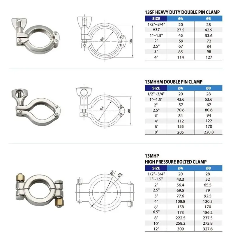 High-Pressure Clamp, constructed from sanitary stainless steel, provide solid, durability, fit to assemble with the ferrule, high-pressure rating, High-Pressure Clamp widely used in food and beverage, brewing, pharmaceutical industries.