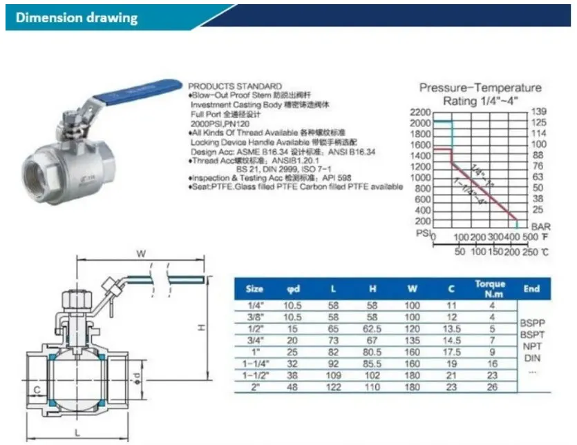 | Max pressure | Max 1000 psi for Water, Oil, Gas. |