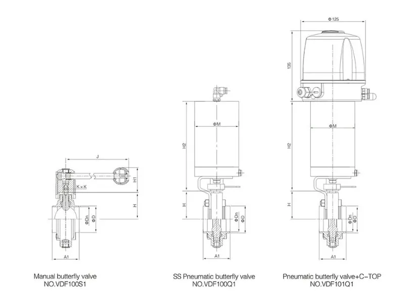 | Pneumatic Operation | Compatible with Single-acting, Double-acting Pneumatic actuator |