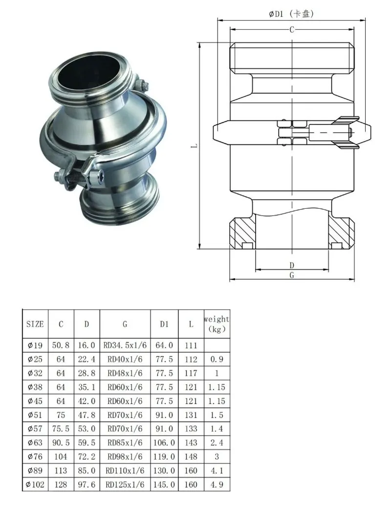 Sanitary check valves also named as "non-return valve", is designed for use in process piping installations to prevent reverse flow. Are a spring check valve with different connection ends.