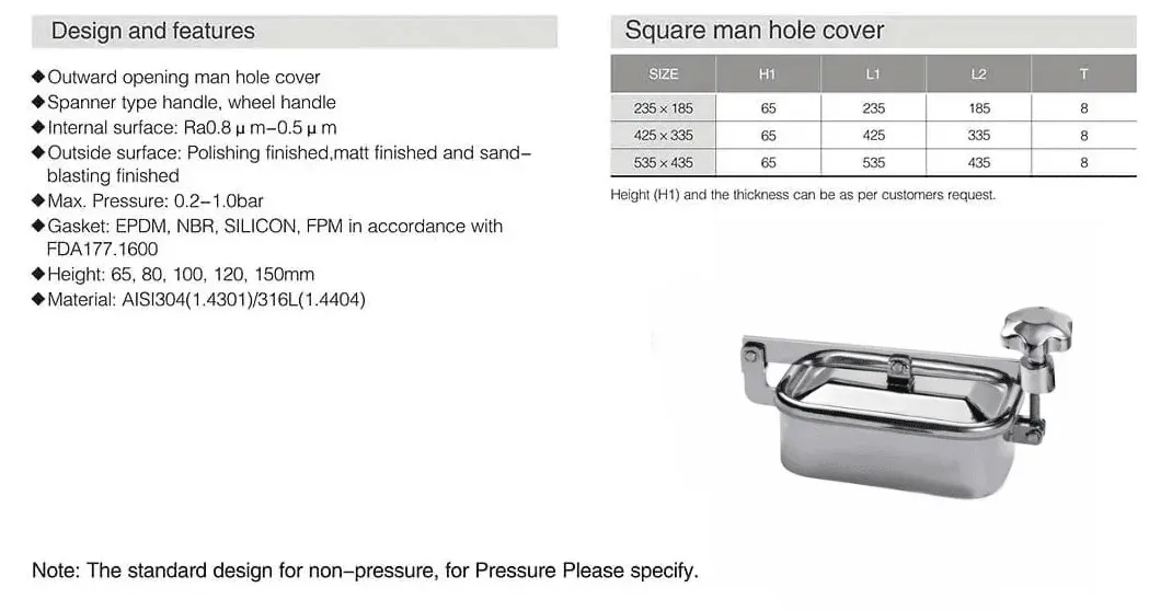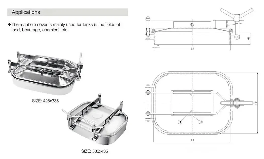 Manhole cover is used on tanks or containers, especially in the dairy industry, where a hygienic closeable mean of access to the interior of the tank required.