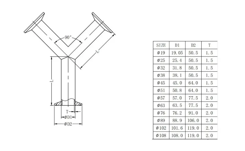 Aohoy Sanitary Stainless Steel ss304 ss316l pipe fitting tri clamp wyes tee y type tee