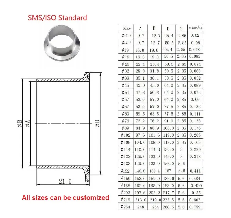 Tri-Clamp End Cap Ferrule Set uses sanitary clamp ends. The integral pipe clamp is usually made of stainless steel and is available in a variety of sizes. It is widely used in piping systems in the food, dairy, beverage, cosmetic, pharmaceutical and fine chemical industries.