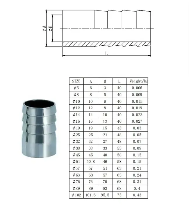 Sanitary Weld Hose Barb Union – 304/316L stainless steel, tri-clamp or weld ends with barbed hose connection. CIP/SIP-ready, 0.8µm RA finish for food/pharma.